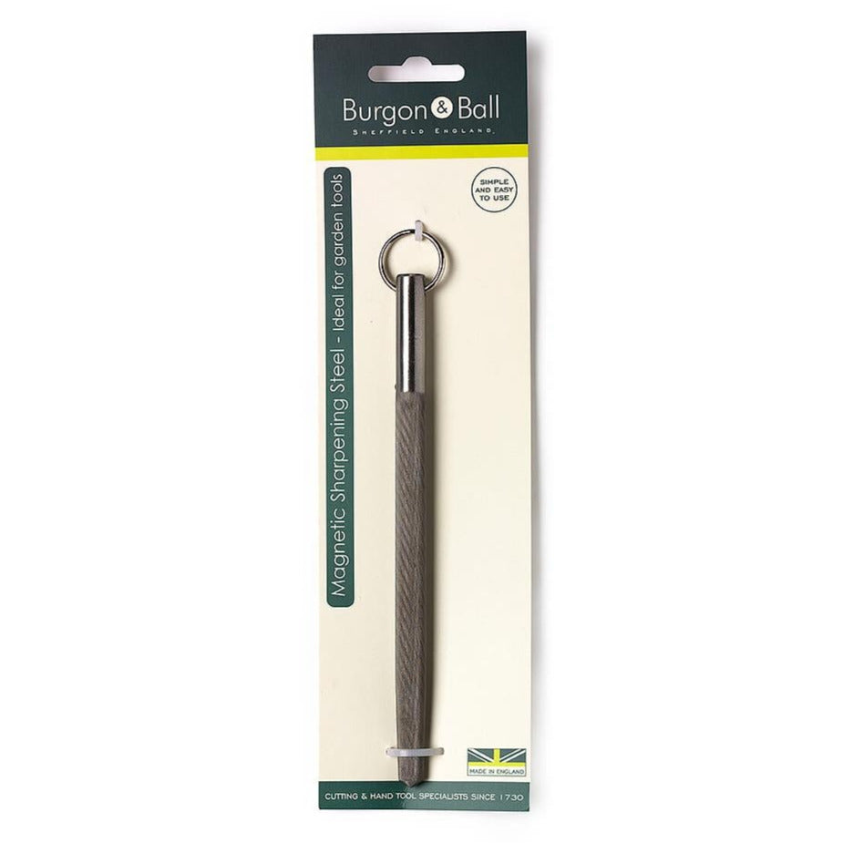 Handy-sized sharpening steel in genuine Sheffield steel. Magnetised to give superior performance, as the filings remain on the steel where they can be simply wiped off with a cloth, rather than remaining on the blade where they may rust.