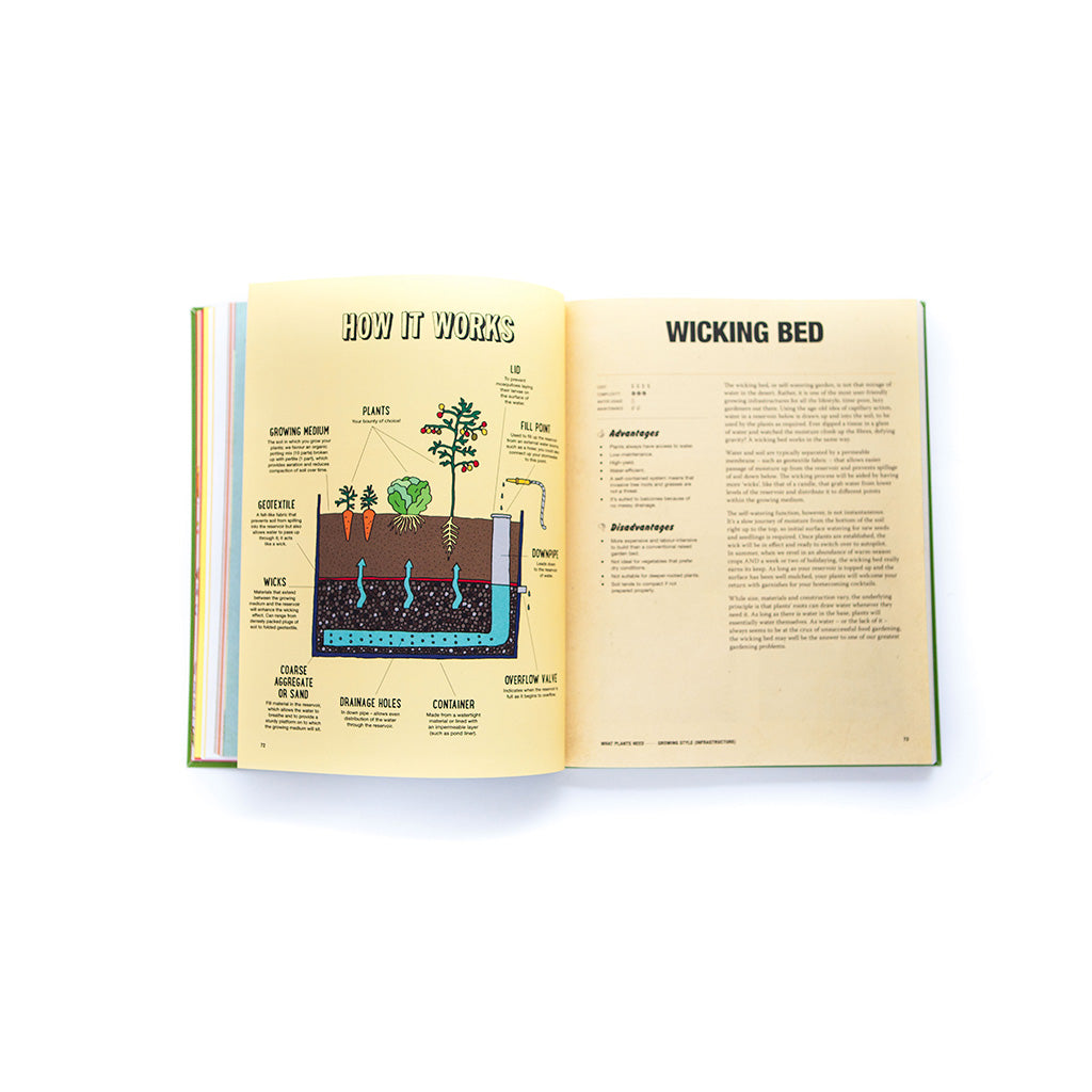 New systems such as wicking beds, aquaponics and hydroponics are covered, as are more traditional styles of raised garden beds, in-ground planting, and of course, planting in pots.
